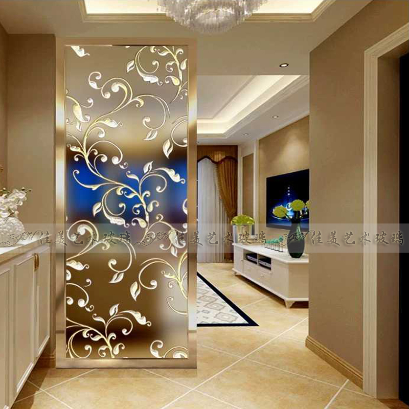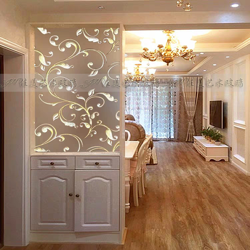 Custom Decorative Art Glass Partition Screen Xuanguan Background Wall Shoe Cabinet Doors And Windows With Simple O Modern Solid Engraving