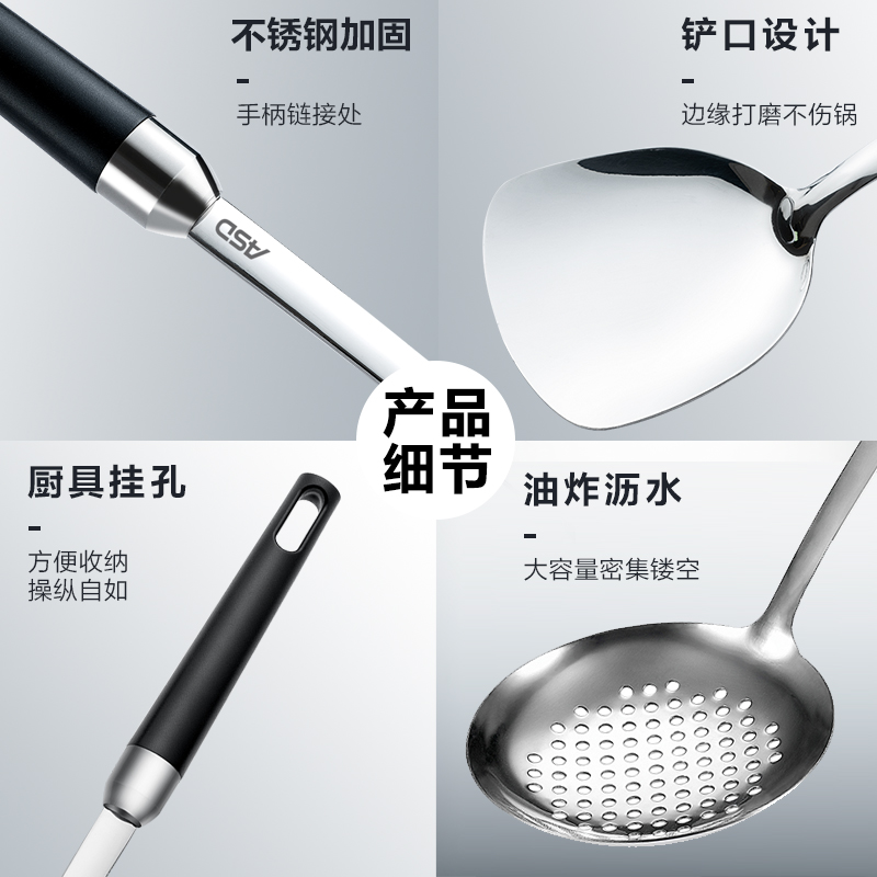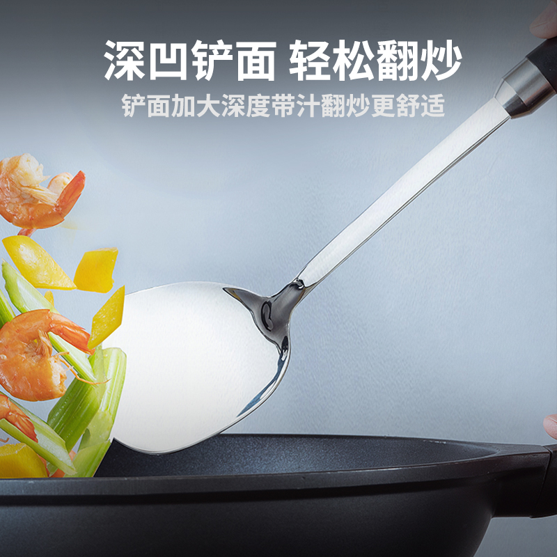 Ashda spatula stainless steel spatula stir-frying silicone spatula Chinese long handle kitchen utensils household kitchen frying spoon colander