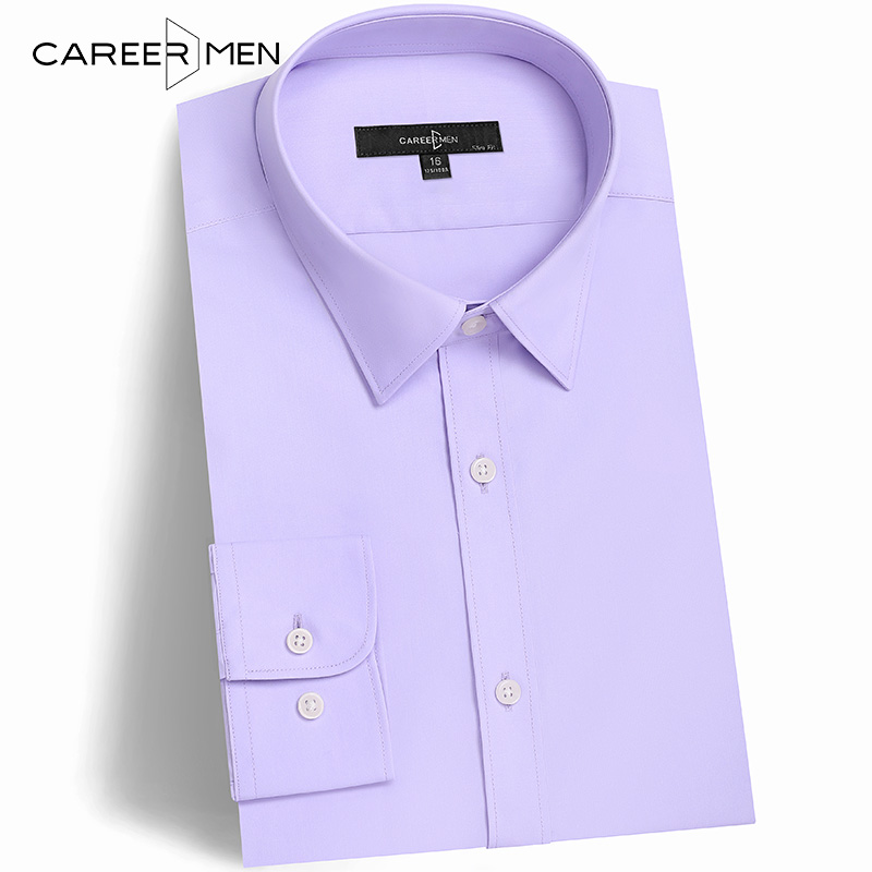 Career door autumn thin shirt men long sleeves free irons breathable pure purple Korean slimming business overalls shirt tide