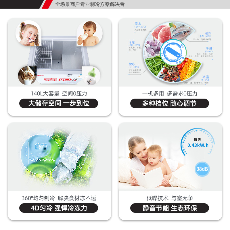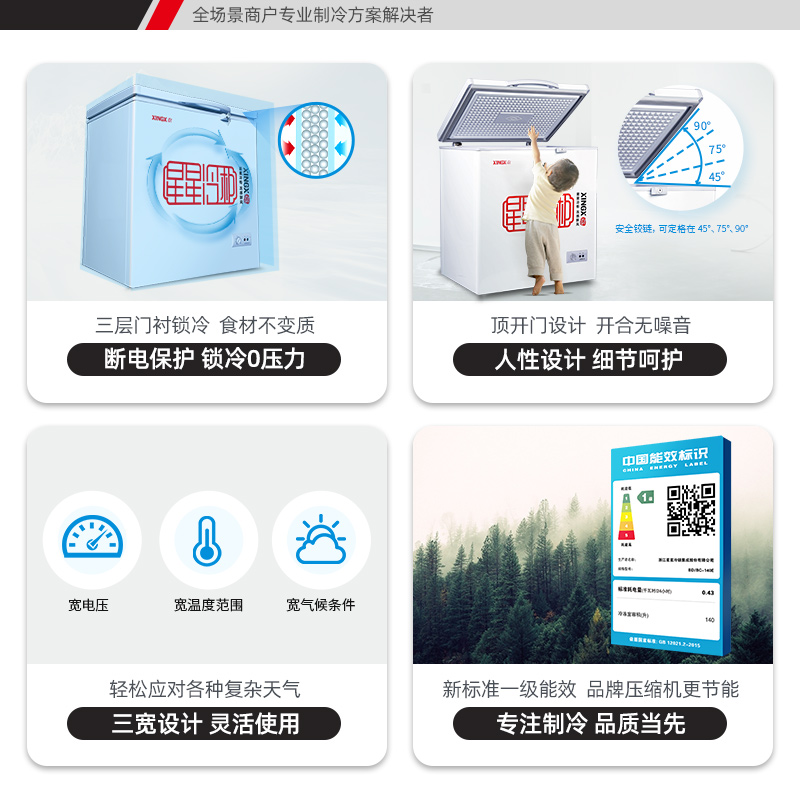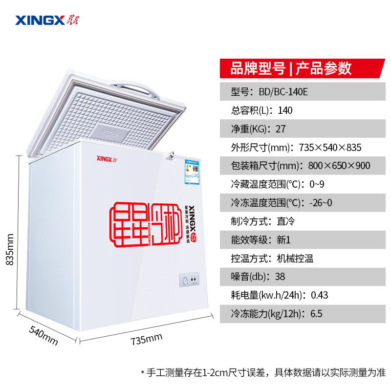 Stars Small Ice Freezer Refrigerated Freezer Home Commercial Freezer First-class Power Saving 140 Liters Horizontal Single Warm Fridge