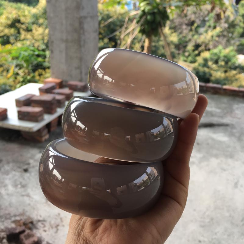 Natural gray ice cigarette gray purple agate chalcedony bracelet No high temperature no burning rough color bracelet Ultra-wide version of large tire bracelet