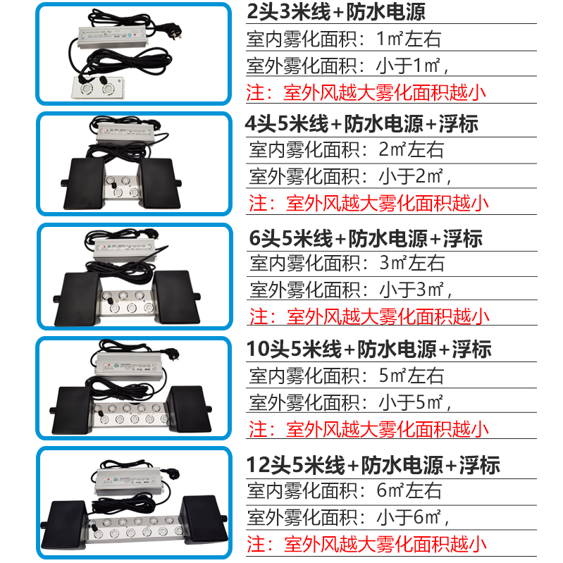 12 Head 1 5 metre Line (not directly 220v used) 12 Head 5 Misline waterproof power supply 12 Head 5 Misline waterproof power buoys 10 Head 5 Misline waterproof Power supply 10 Head 5
