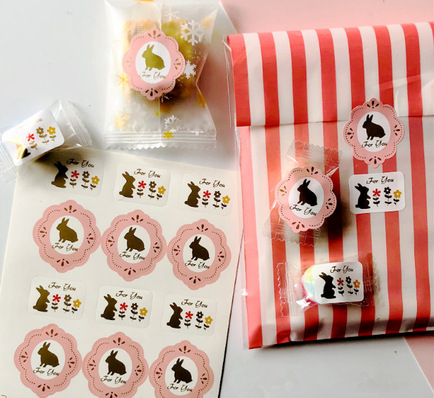 60 FOR YOU cute rabbit sticker New Year gift packaging candy bag seal paste thank you for paying