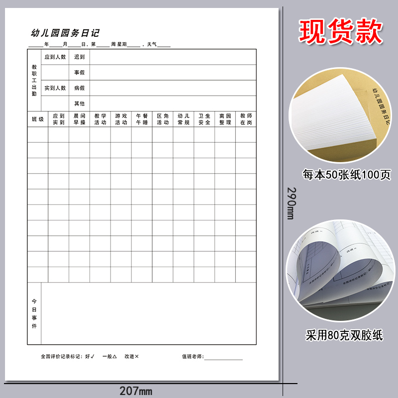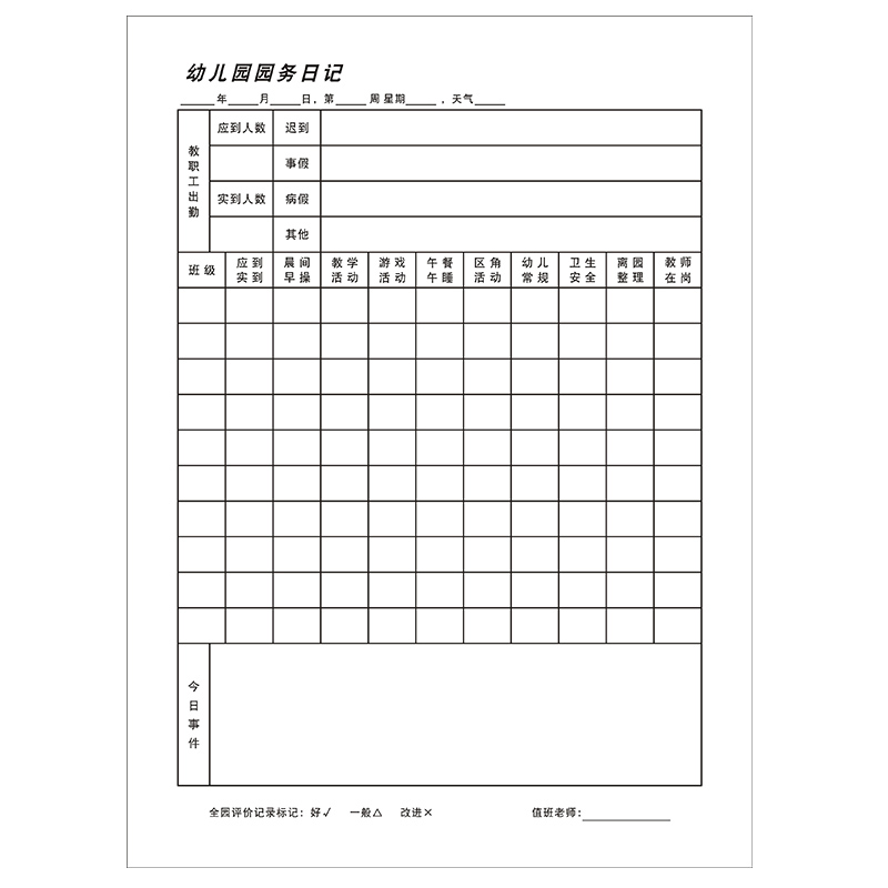 Kindergarten Garden Affairs Day Records Teachers' Daily Work Plan Records Table Park Changlong Duty Management Registration Form to Do