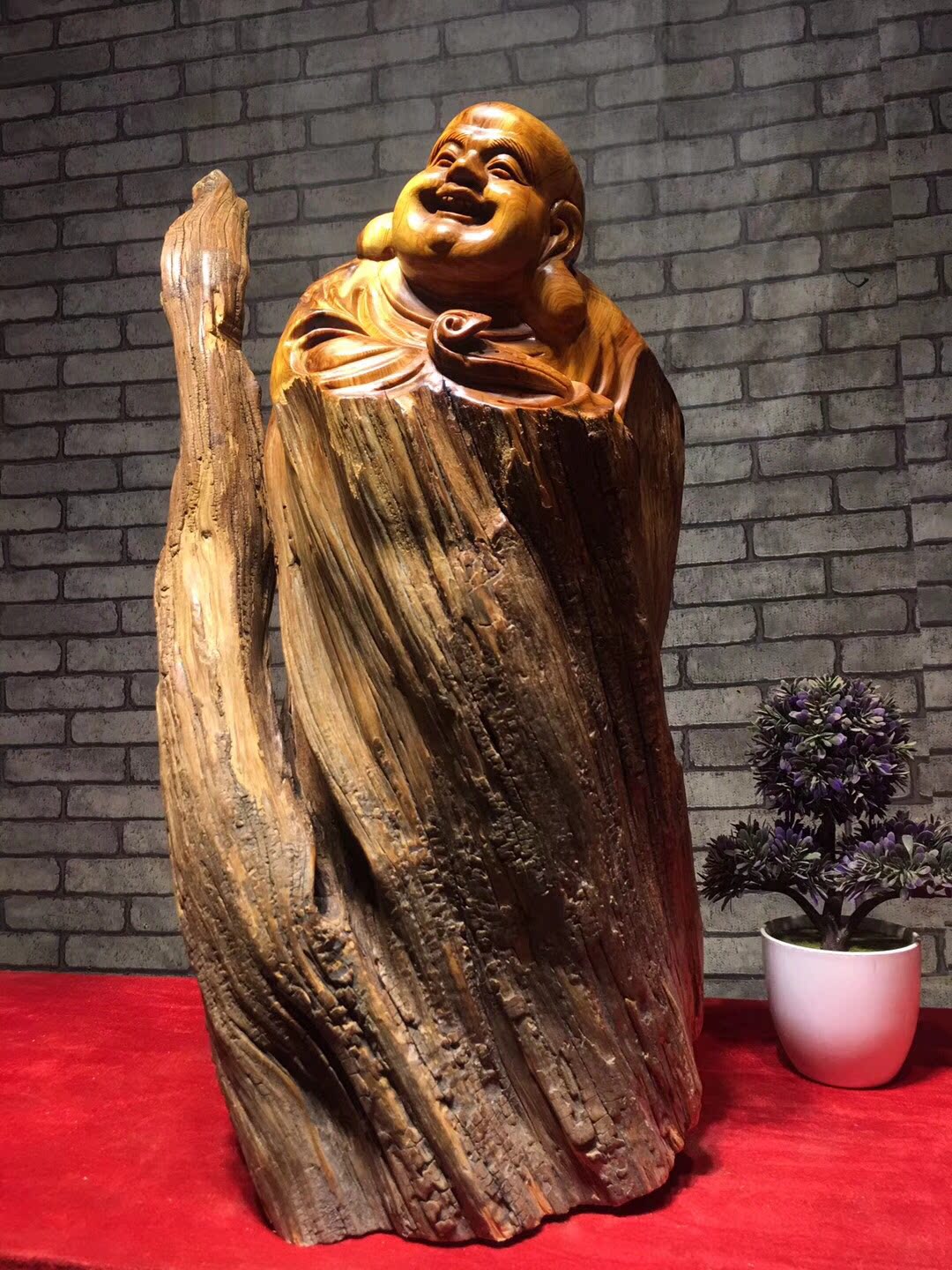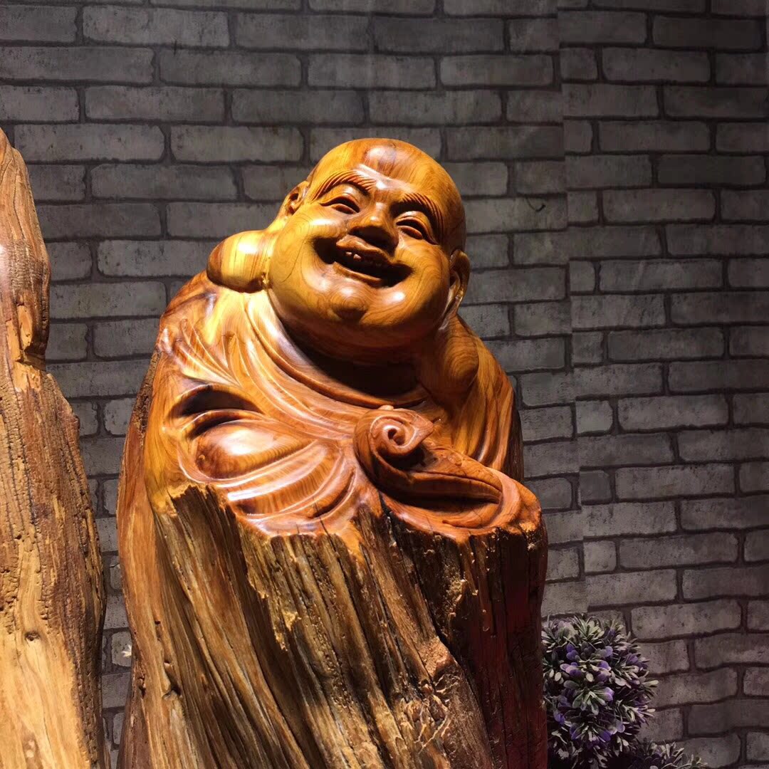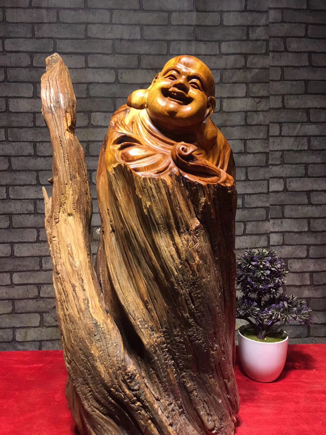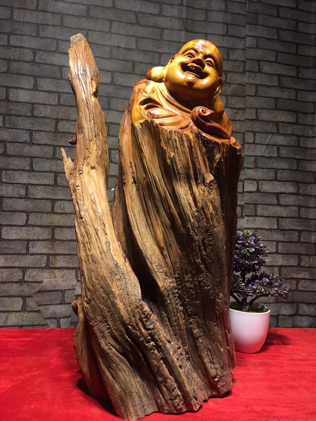 Root carving wood carving ornaments Ruyi Maitreya Buddha Chen Hua Ya cypress no spell no complement natural shape clear and powerful gift