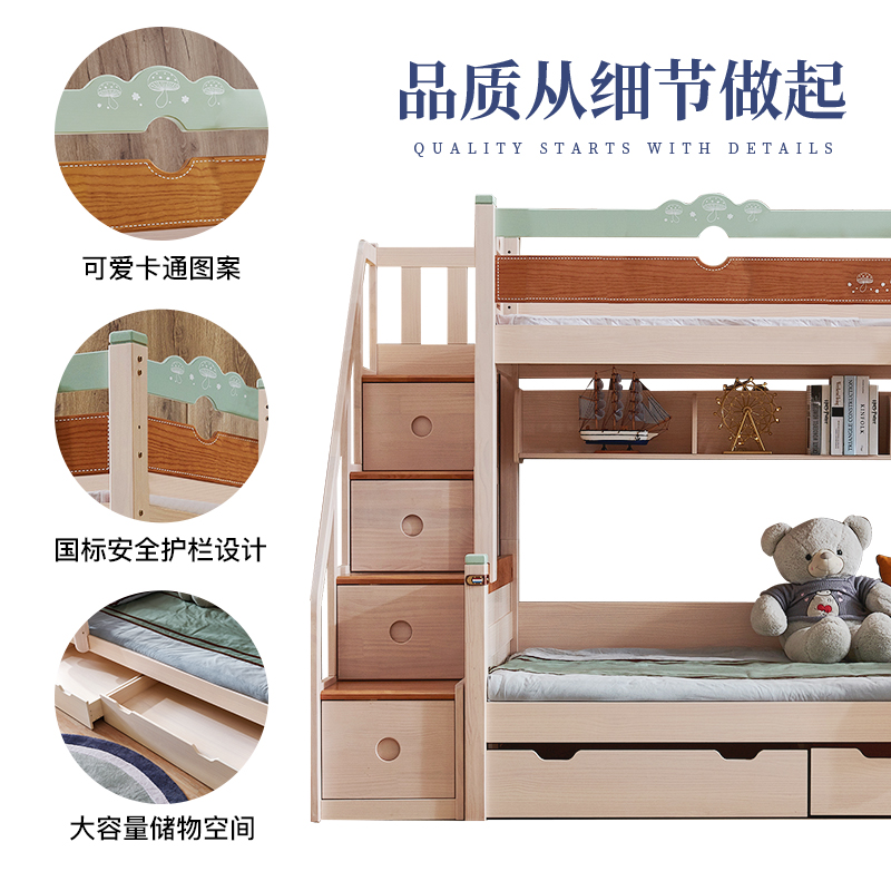 One child 1 girl's room, bunk bed, boy 1 5 Nordic children's bed, mother and child bed, solid wood bed, double
