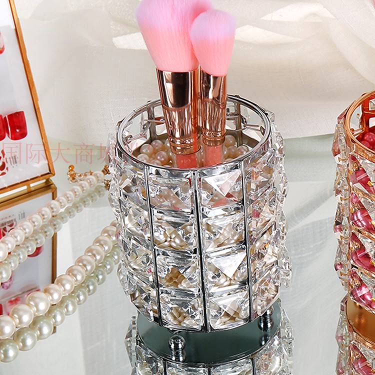 European-style crystal brush storage tube dormitory artifact comb shelf brush eyebrow pencil barrel cosmetic storage box