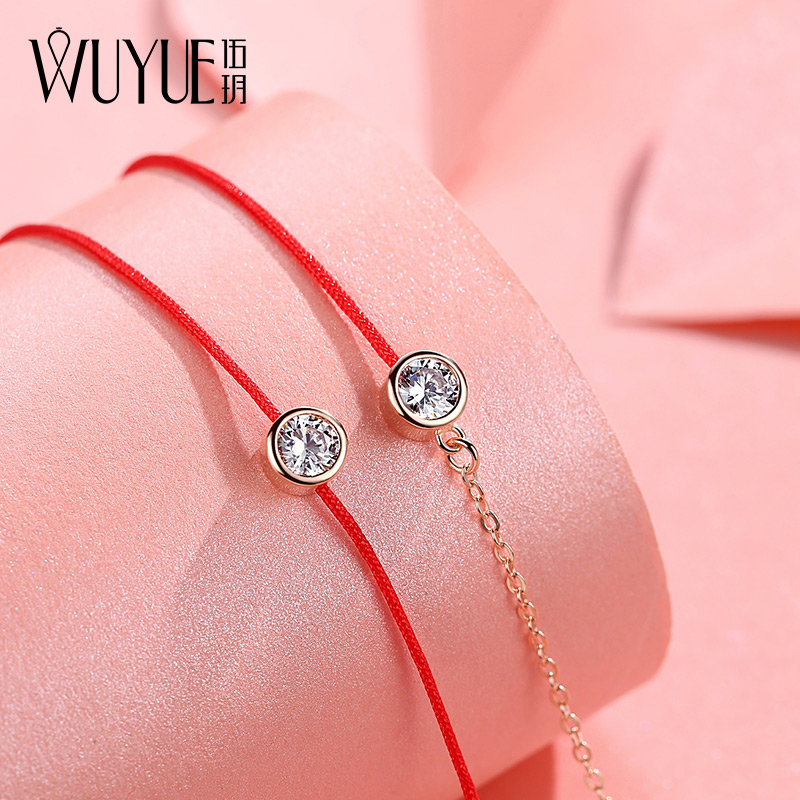925 sterling silver year of Life anklet women's red rope braided foot rope Rose gold foot neck chain fine summer foot chain 2021 new