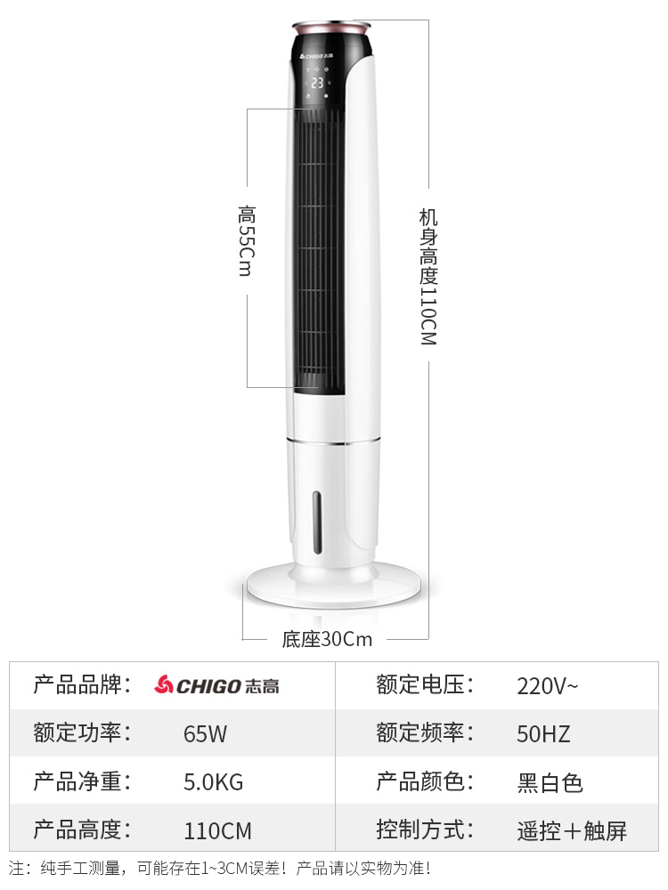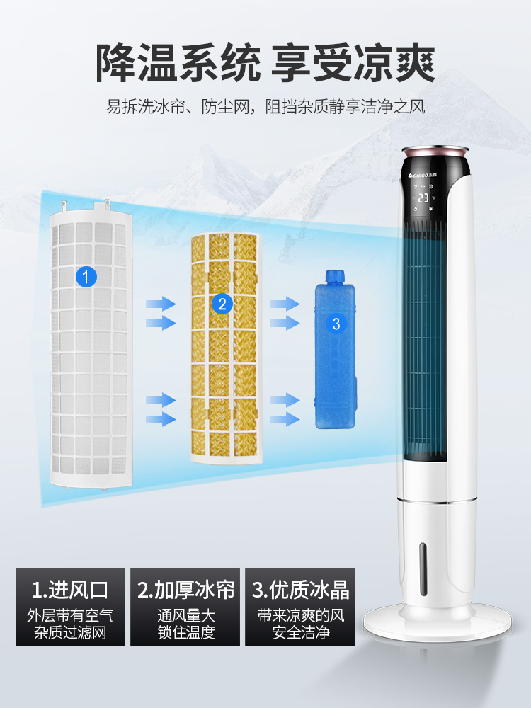 Zhigao air conditioning fan Tower type household cooling fan Silent water-cooled vertical humidification mobile cooler Single cold small air conditioning