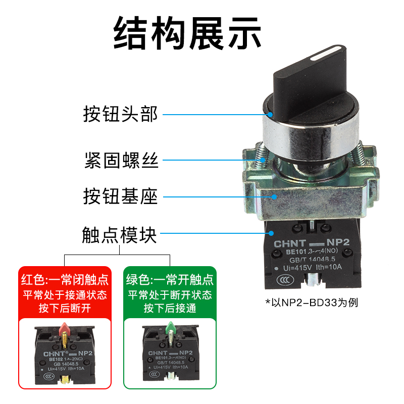 Positive Thai button switch Two self-lock knob NP2-BD21 switch button a regular open