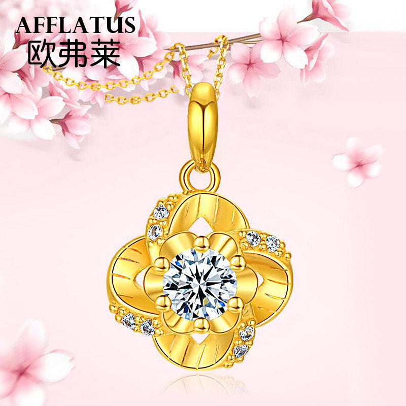 Hard gold four-leaf pendant 18k necklace Hardgold four-leaf pendant Food o-word necklace inlaid with four-leaf pendant (inlaid with Mozambe) inlaid with four-leaf 18K necklace (inlaid with Mozan)