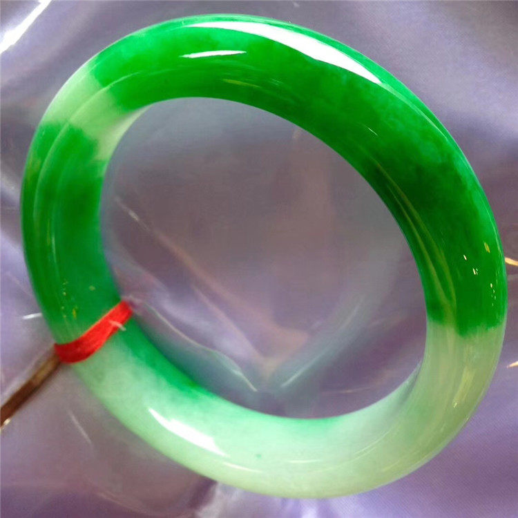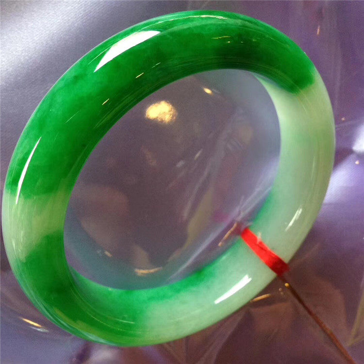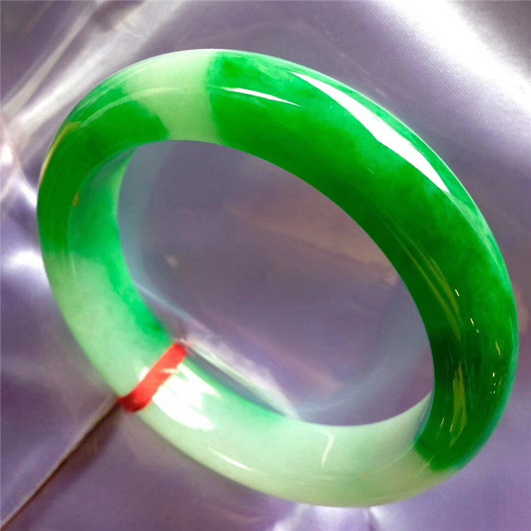 High-grade natural jade bracelet with white background, blue floating flowers, green old pit jade bracelet, certificate, emperor green ice species