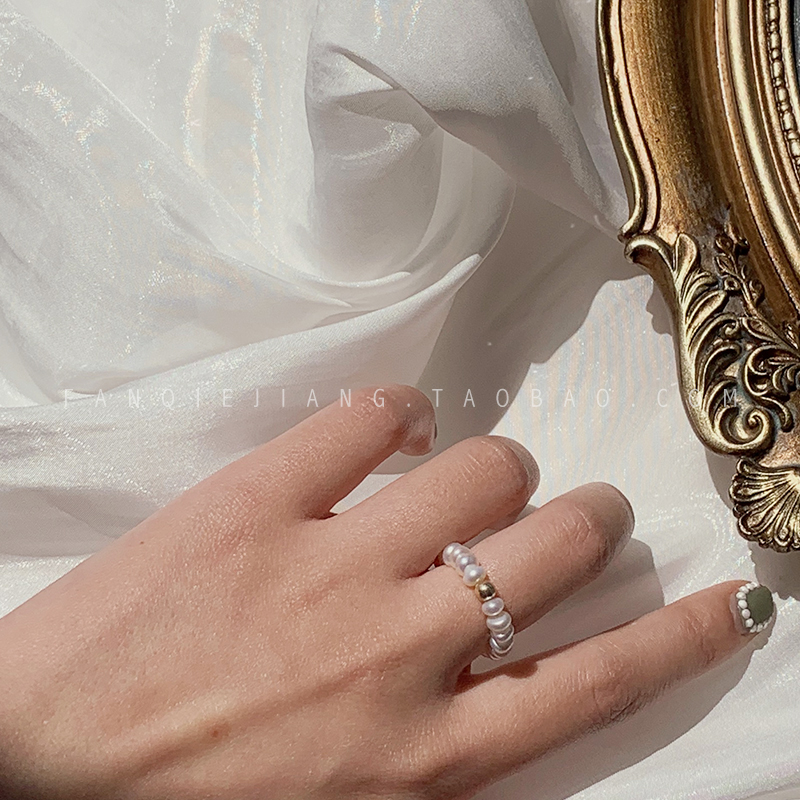 Super Fairy Natural Freshwater Pearl Ring Girl Advanced French Index Ring Japanese Light Luxury Little Luxury Design