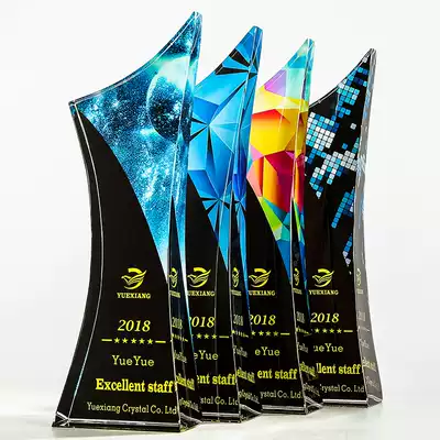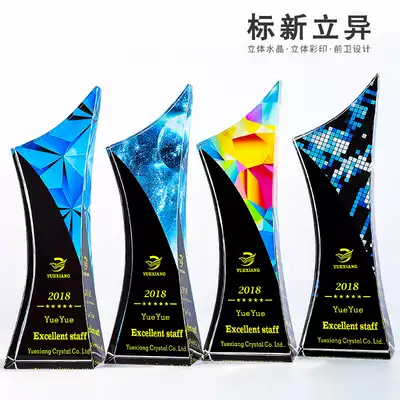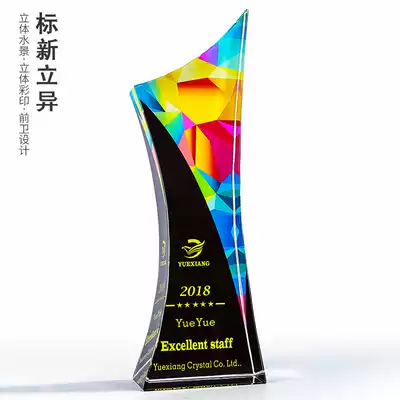 Crystal trophy custom creative lettering color printing Excellent staff award distribution authorization card Custom gift souvenir