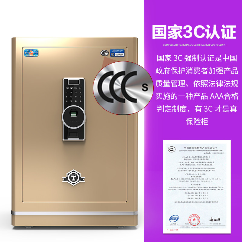 China Tiger brand 3C certification safe home small 50cm fingerprint password safe CSP certification office documents large capacity bedside all steel anti-theft into the wardrobe business family clip