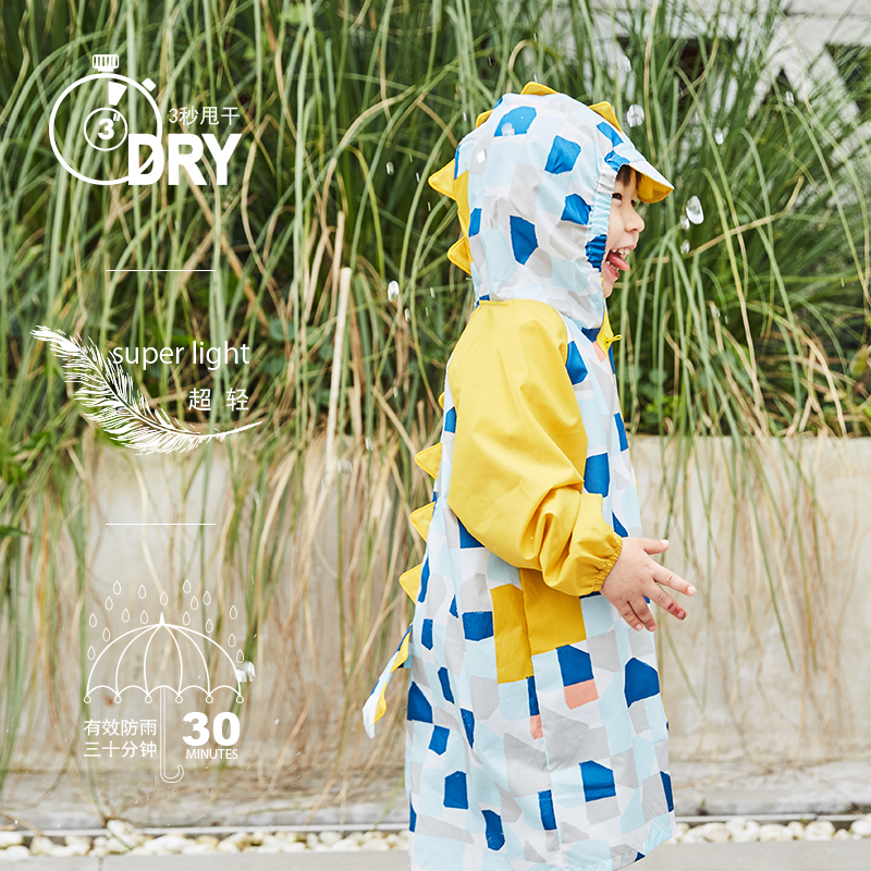 UzMz fire-breathing dragon children's raincoat boys and girls protective clothing waterproof quick-drying cartoon kindergarten baby poncho