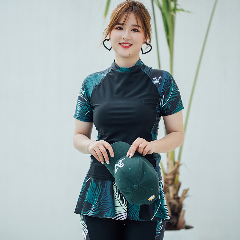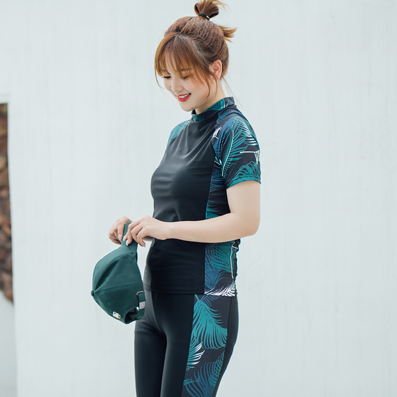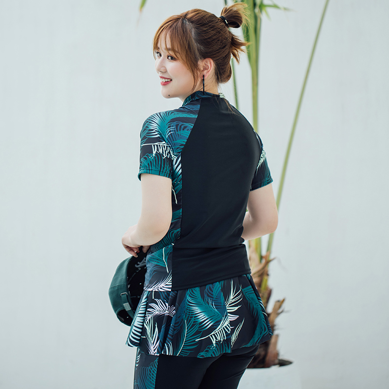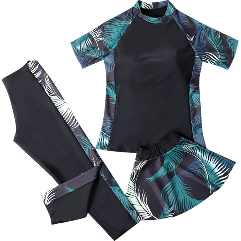 Large size sports swimsuit women's three sets of slim conservative Korean students fat mm two style swimwear women long pants dress style