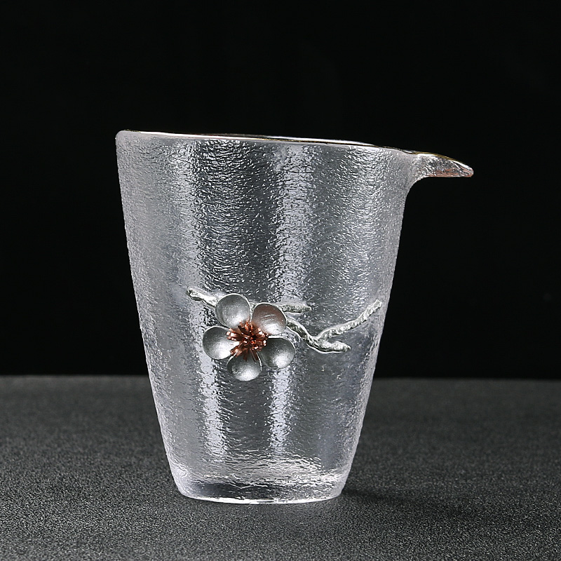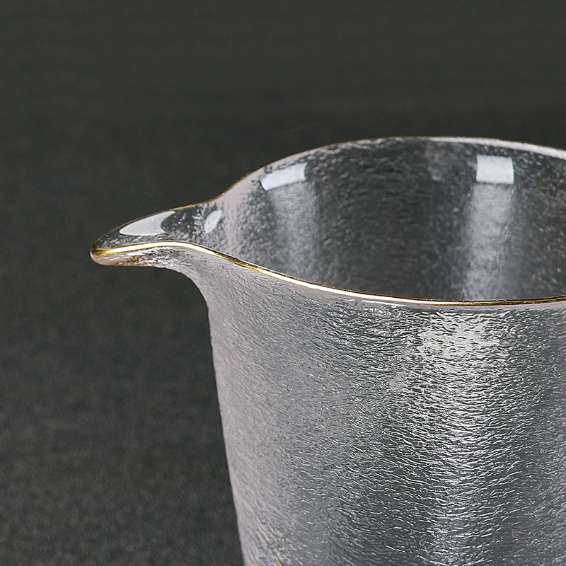 Glass justice cup painted gold frosted eagle beak thickened transparent high hammer pattern high temperature resistant gold edge inlaid tin tea sea tea divider