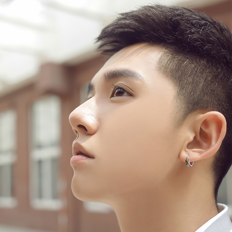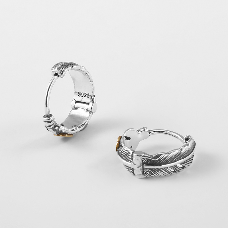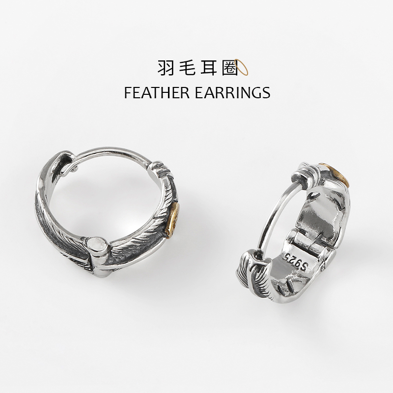 925 silver men's ear nails Ring Personality Tide Personality Tide Man Retro Street Harbor Wind Thai Silver Niche Design Feather Pure single
