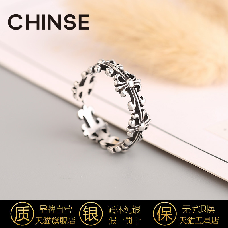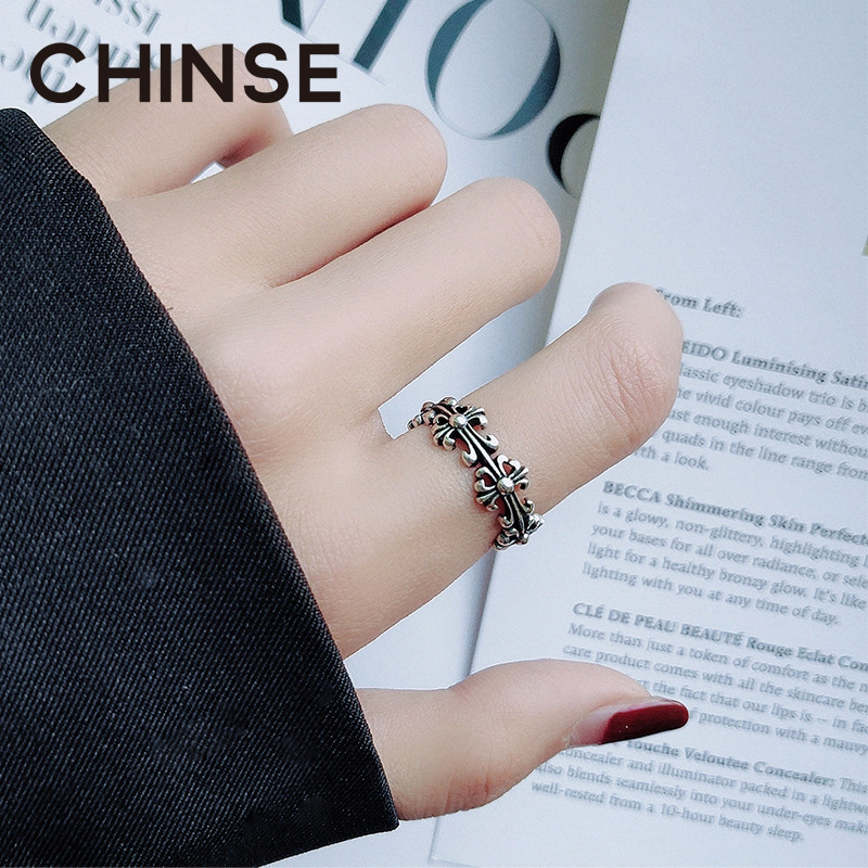 925 pure silver cross ring female fashion personality small crowddesign net red trampoline Japanese style light extravagant opening forefinger