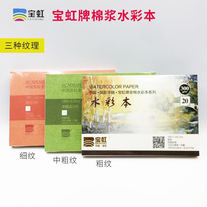 Baoding Bao Hong Watercolor Ben Watercolor Paper Cotton Pulp Four Sides Seal Glue 300 gr coarse grain coarse grain fine grain pink-Taobao