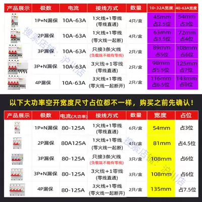 Delixi 2p Air switch with leakage protection circuit breaker household high power open leakage 100A125A safety