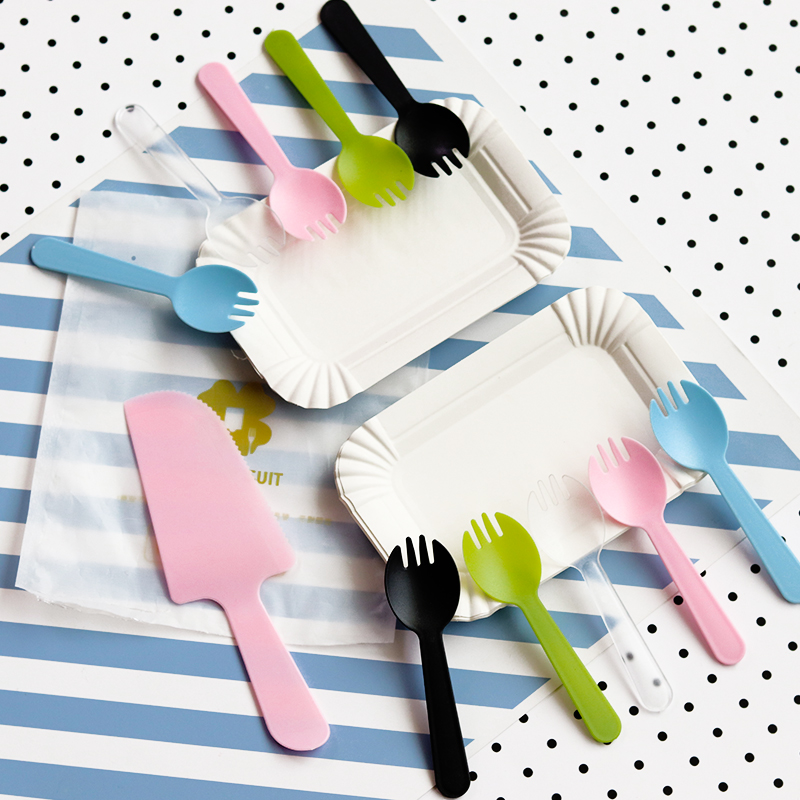 Baking Cake Cutlery Knife Fork Tray Suit Disposable Birthday Cake Knife Fork Tray Suit Cake Dinner Plate Fork Composition