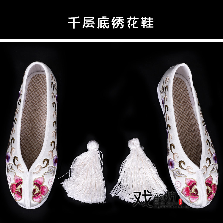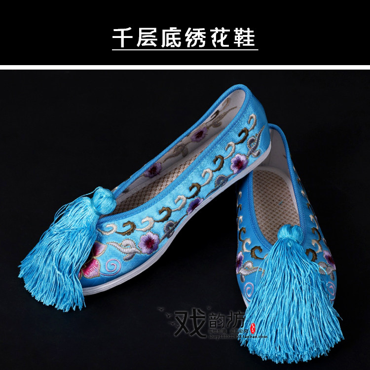 Opera Ancient Dress Embroidered Color Shoes Flat Bottom Embroidered Shoes Children Performance Shoes Women Shoes The More Peking Flowers Denier Shoes Lady Shoes