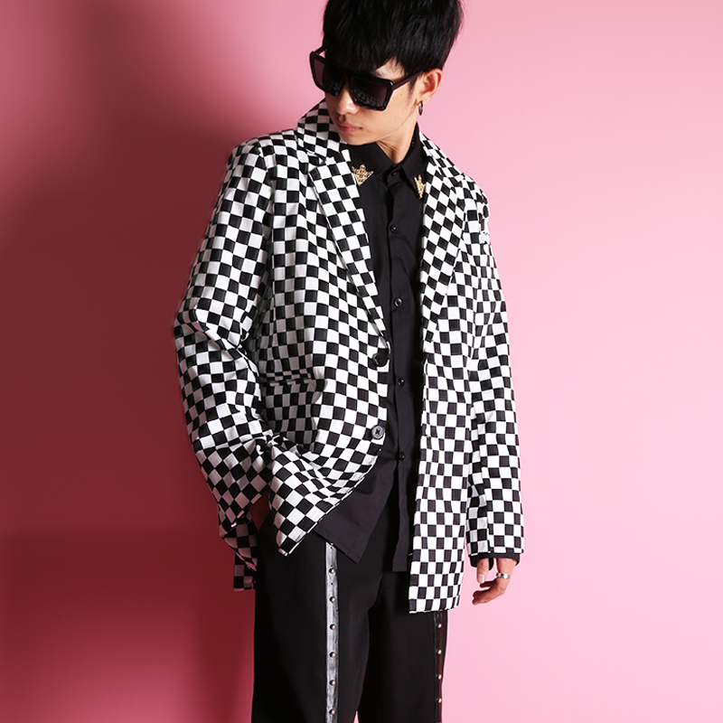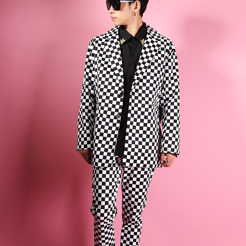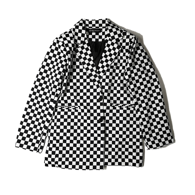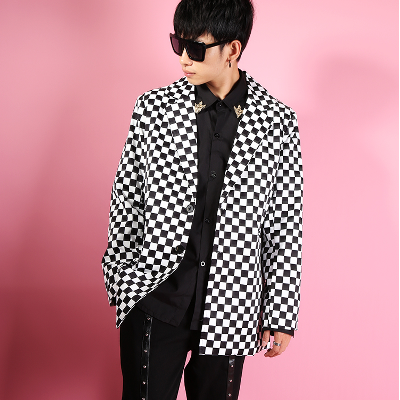Hippo Storm black and white checkered wide-shouldered suit loose small suit Hong Kong style retro jacket photo studio men's suit dress