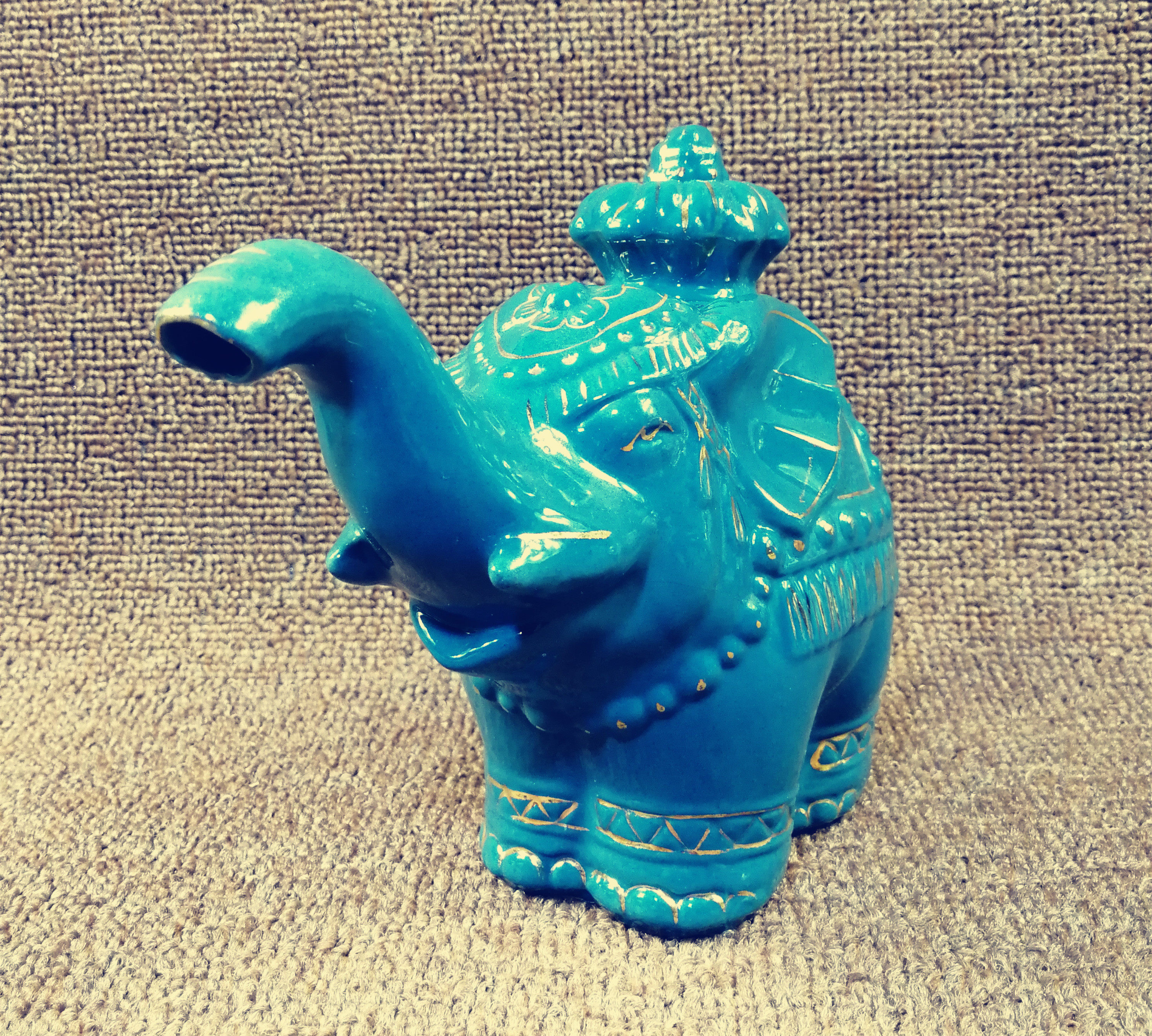 1970s and 1980s Gold and green glaze porcelain pot Elephant shape porcelain old teapot