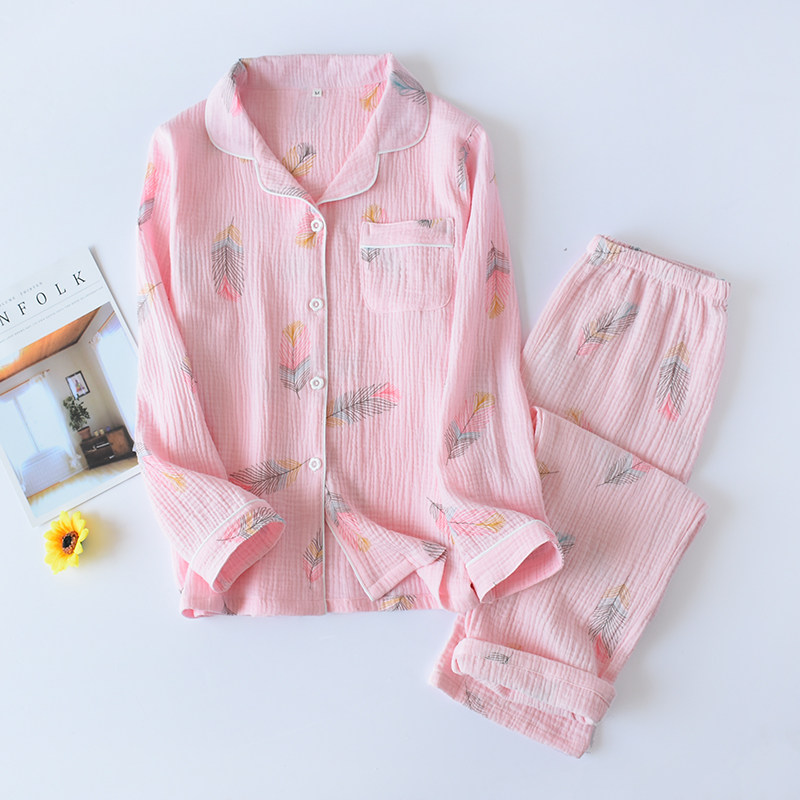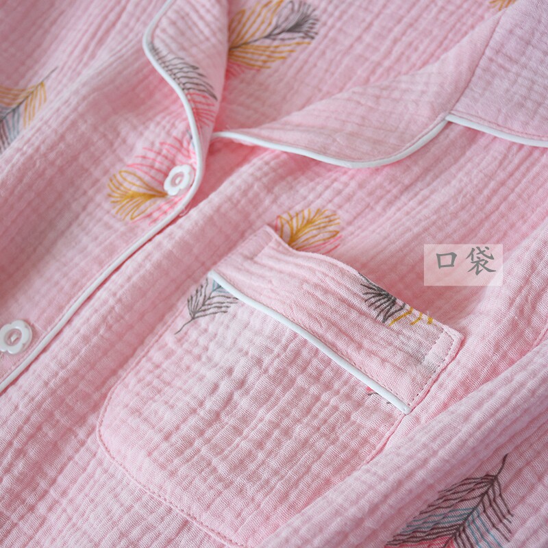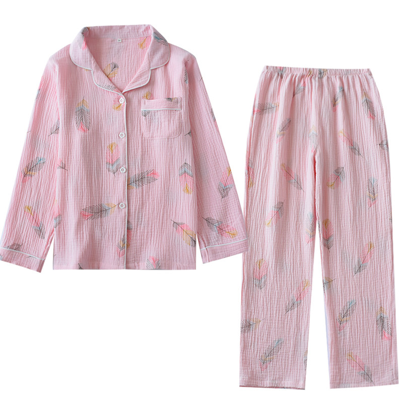 Day series new all-cotton cloth sleepwear spring autumn season pure cotton washed crepe cloth long sleeve stay-at-home suit open-shirt thin