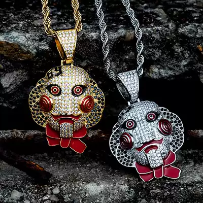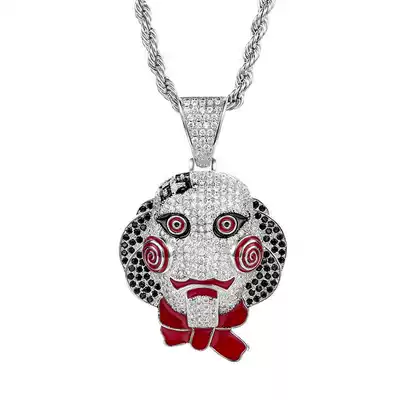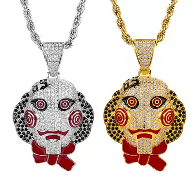 6ix9ine ghost face man chainsaw thriller oil zircon doll mask European and American trend hip hop pendant jewelry