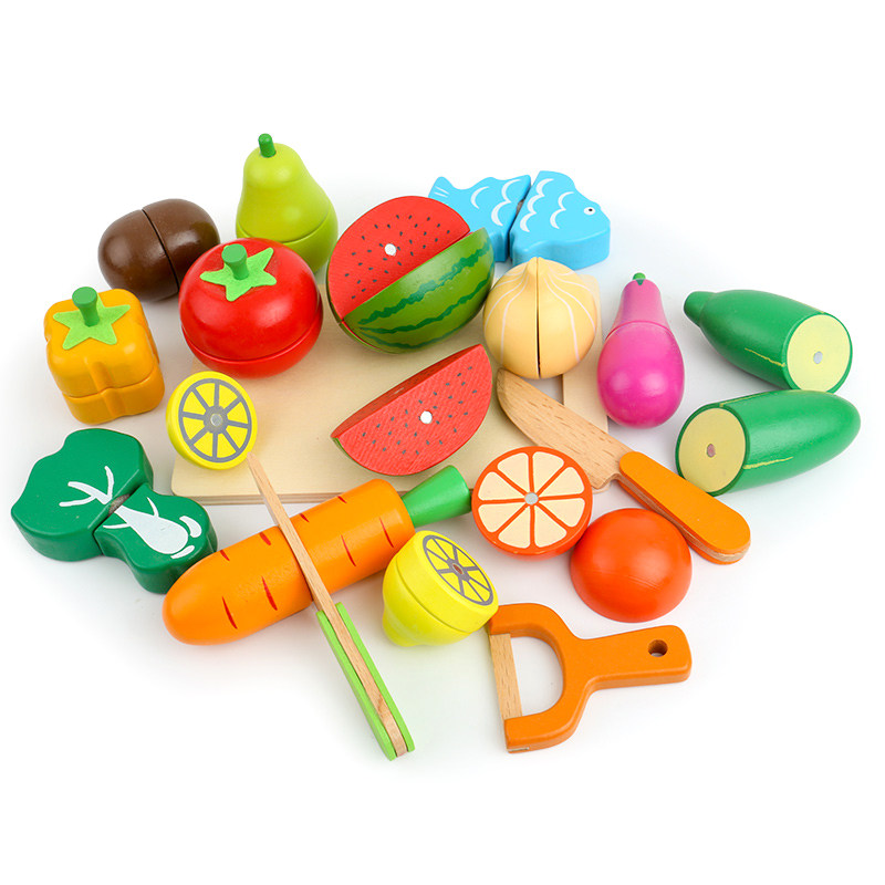 Children's magnetic fruit and vegetable cutting music baby wooden cutting look kitchen simulation dress up wine set toy