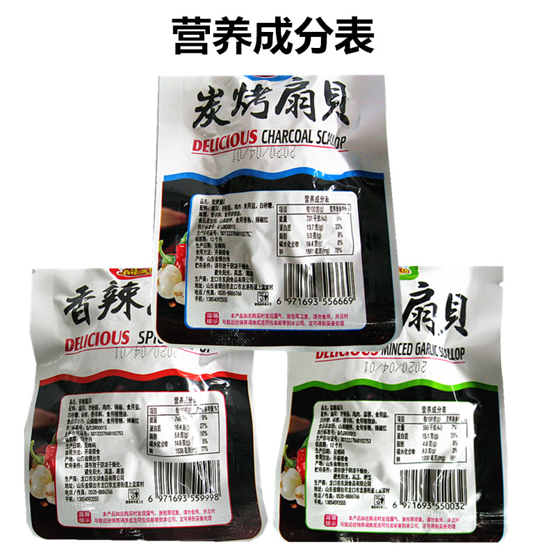 Garlic scallop 250g Charcoal grilled scallop 250g Spicy Scallop 250g Garlic Scallop 500g Spicy scallop 500g Charcoal grilled scallop 500g Three kinds of mixed 500g