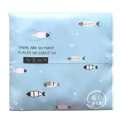 Patterned paper towel color printing extraction toilet paper cartoon fish portable paper towel small fish portable paper towel small bag carry 8 pack 60 draw
