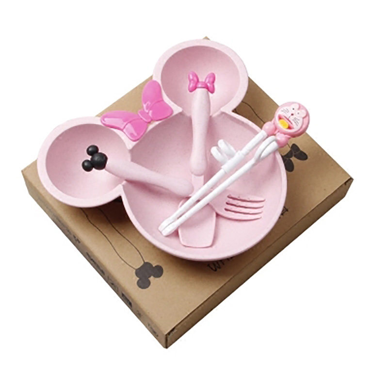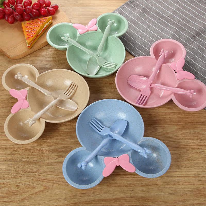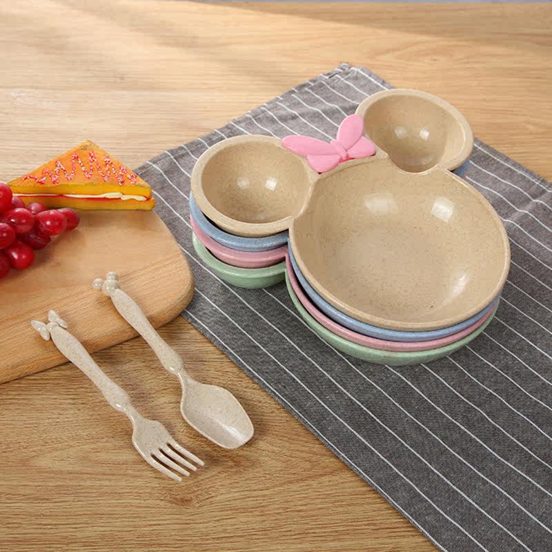Children's eco-friendly anti-fall cartoon Mickey Separated Wheat Straw Cutlery Sets Fork Spoon Learning Training Chopsticks