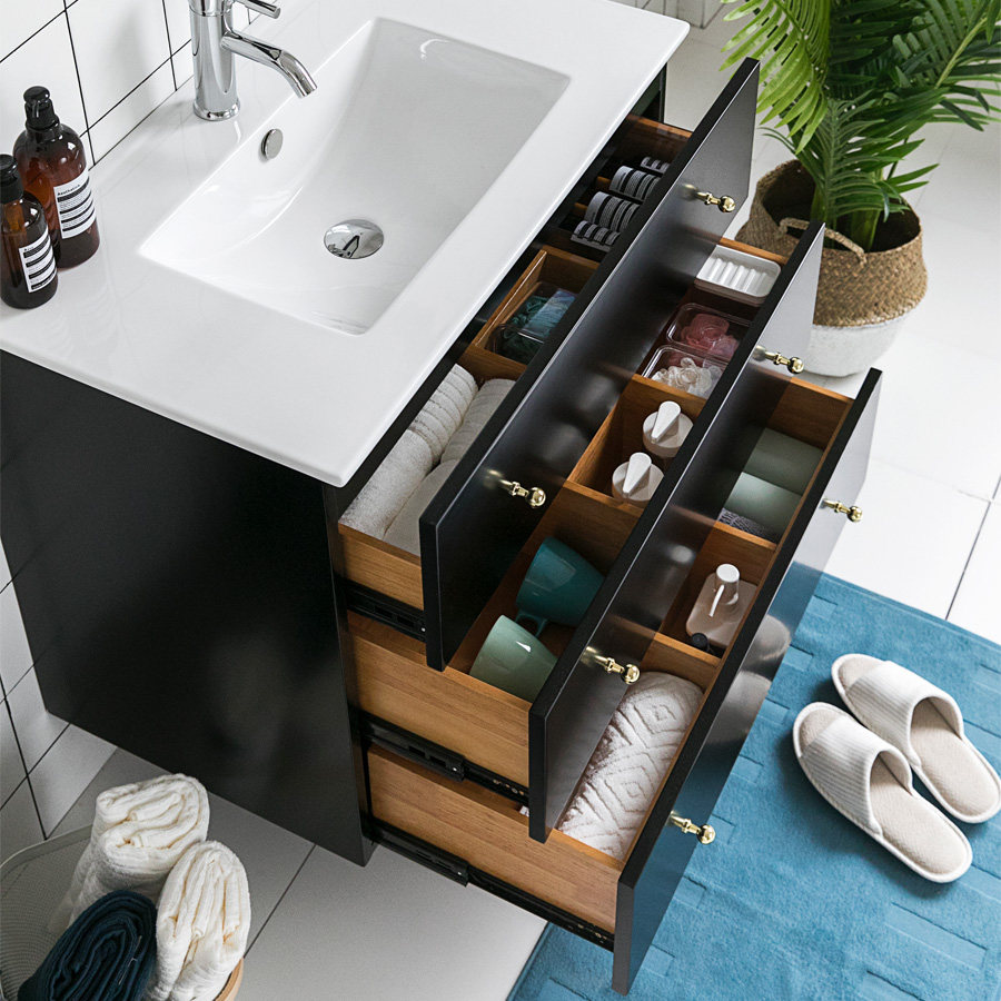 Nordic modern simple minimalist style light luxury Sumitomo with the same all solid wood handle bathroom cabinet sink