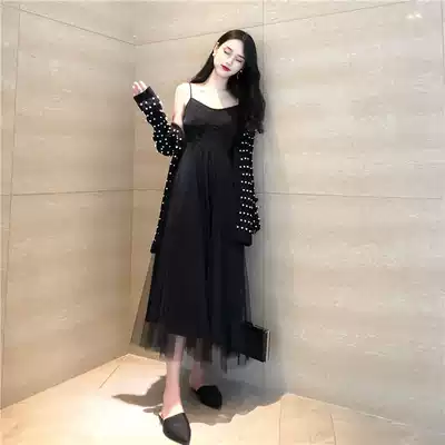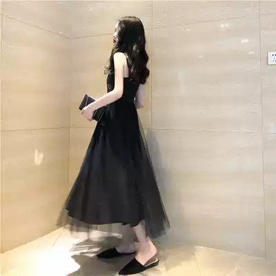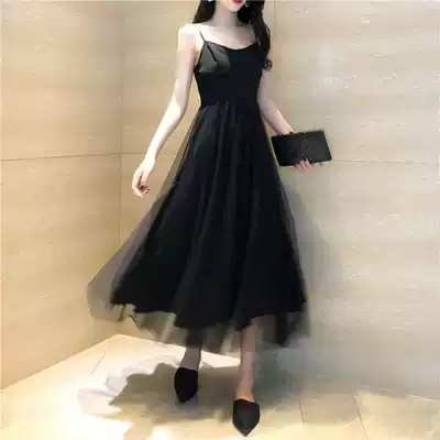 egg skirt French first love is very fairy black dress Super fairy forest net gauze suspender skirt summer long skirt