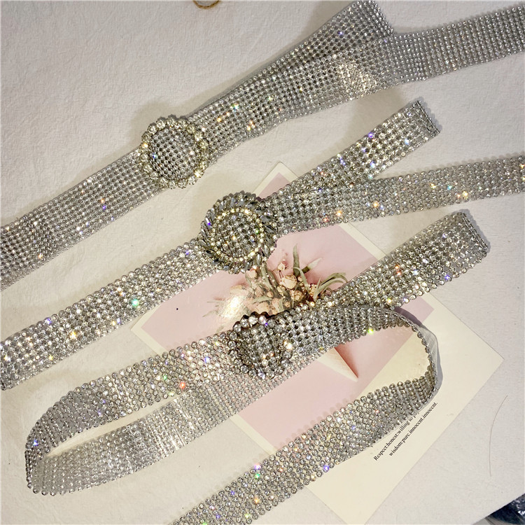 New ins Fashion Full Diamond Plastic Belt Ladies Waist Seal Luxury Bright Diamond Inlaid Heavy Industry Accessories pvc Waist Tide