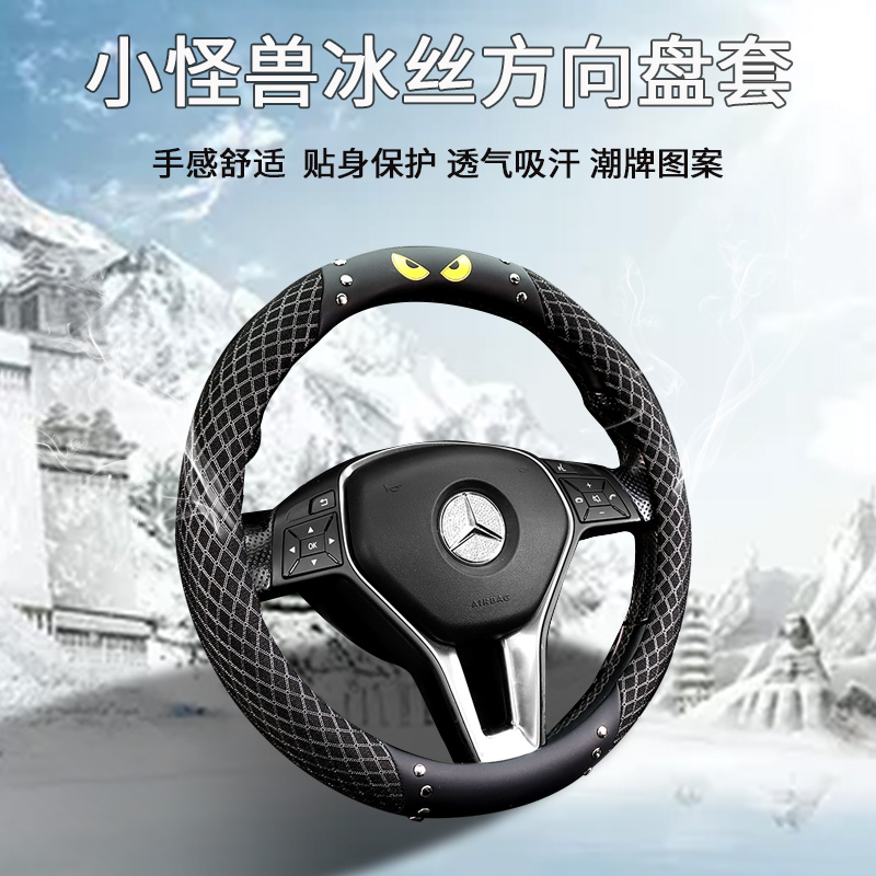 Four seasons car steering wheel cover summer ice silk sweat-absorbing breathable Mercedes Audi Foss sports D-type car handle