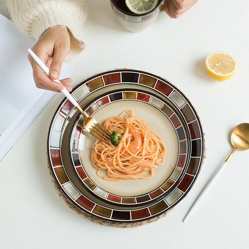Ceramic Dinner Plate Eurostyle Relief Creativity 8 Inch Large Steak Tray Water Fruit Pan Dishes Combined Microwave Oven Cutlery