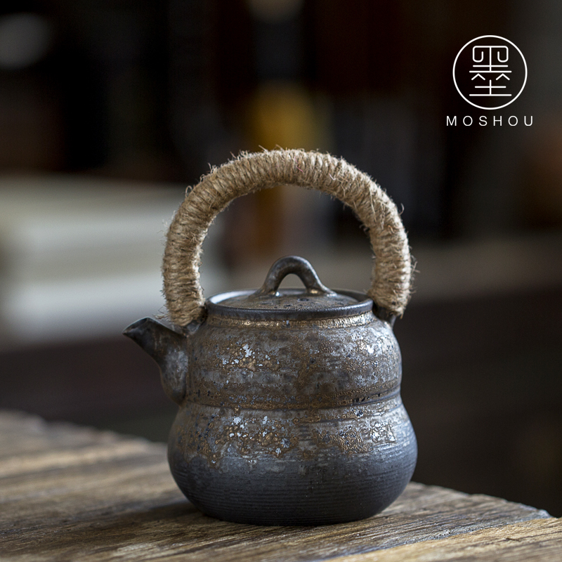 Mo Shou Japanese beam teapot Vintage coarse pottery Kung Fu tea warm teapot Ceramic teapot Single pot kiln change tea pot