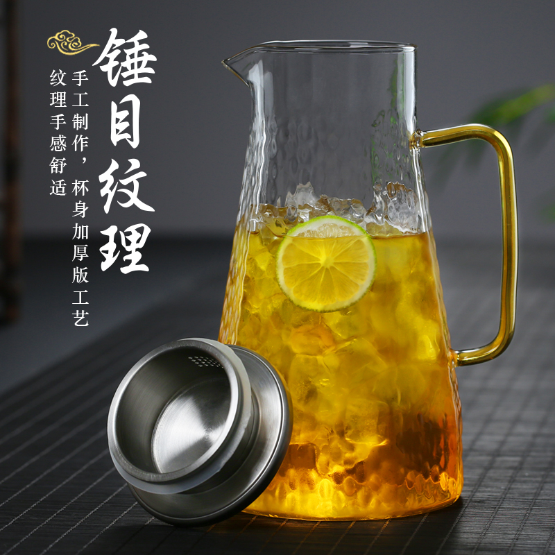 Shallow Tea Tea Hammering Cold Water Jug Glass High Temperature Resistant Thickened Large Capacity Cold Water Pot Suit Cool White Open Explosion Proof Kettle