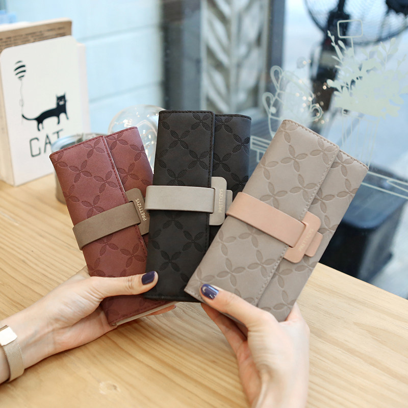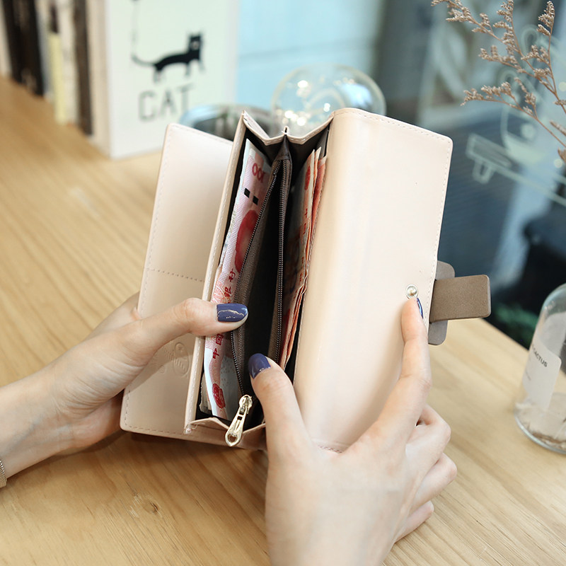 Fan element Korean version of the new long women's wallet contrast buckle simple large capacity multi-card wallet clutch bag
