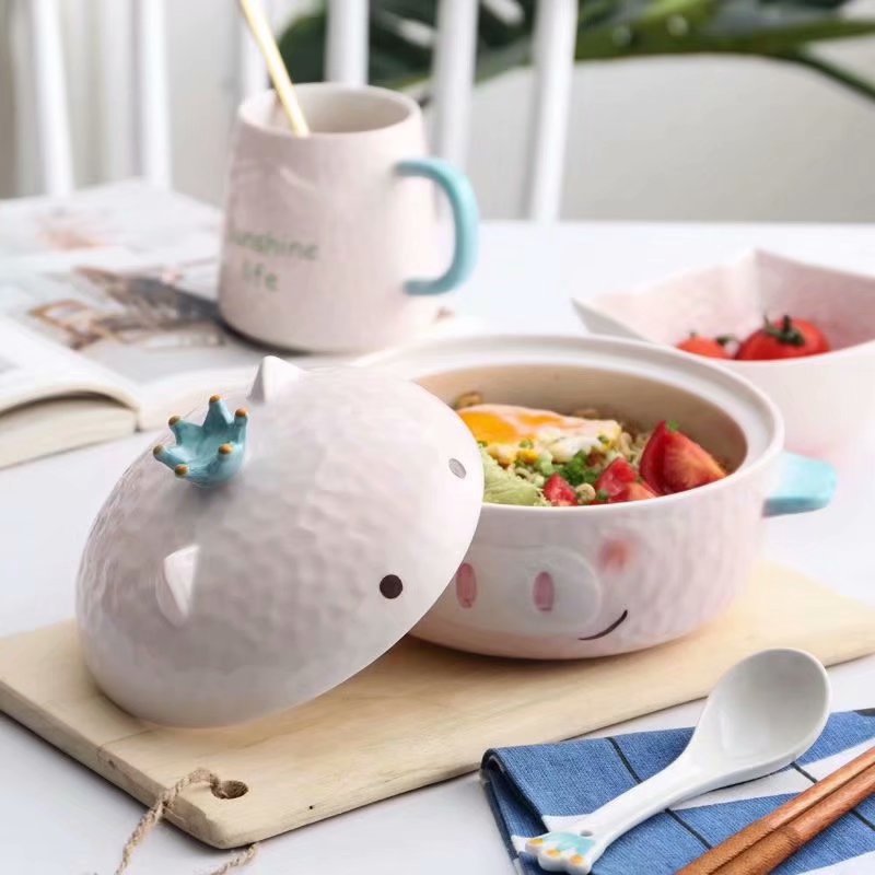 Small Pig Noodle Bowl Small Pig Spoon Small Pig Water Cup Piglet Square Pan