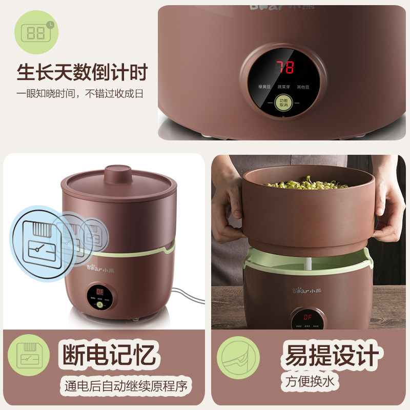 Bear purple sand bean sprout machine Household automatic multi-function soil pottery hair green soybean sprout artifact large capacity pot basin