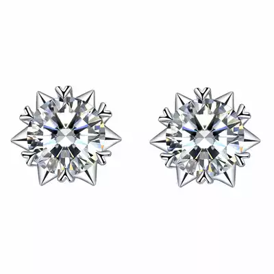 PT950 platinum ear needles female snowflake starlight Mosan diamond earrings 3 carats 30 points screw screw ear bone nails luxury
