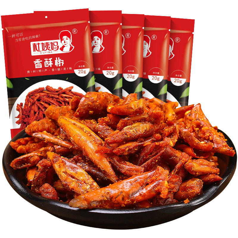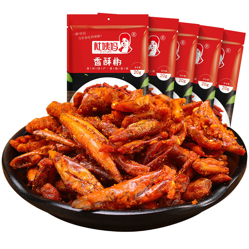 Guizhou specific snack savory spicy crispy and crisp peppers 20gX10 bag dry chili crunchy snacks DYM