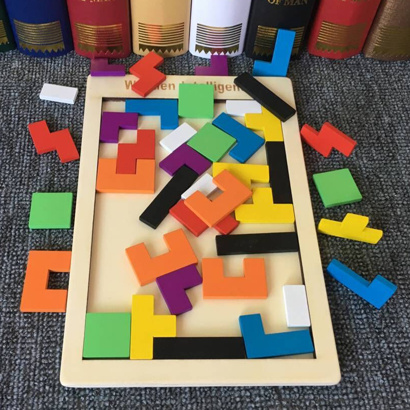 New boutique Russia Tetris bouquets Russian Tetris Russian Animal Puzzle Iron Box Russia Square 4 Clever Brain Mon Fun Jigsaw Puzzle Mont's creative jigsaw puzzle Magnetic Seven Beech Wood Seven Coincidentally 100