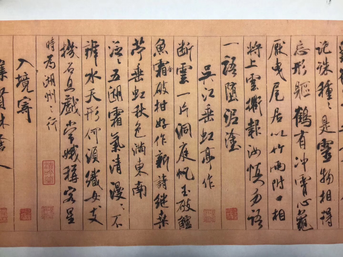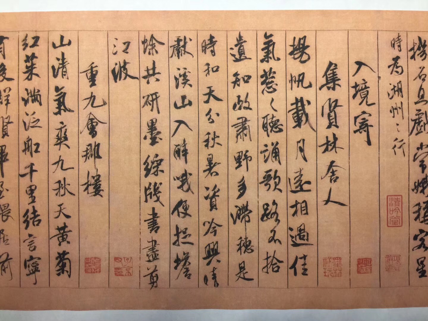 Imitation ancient painting and calligraphy Michelin Shu vegetarian post Song Four ink brushes calligraphy works long volume silk cloth covered products